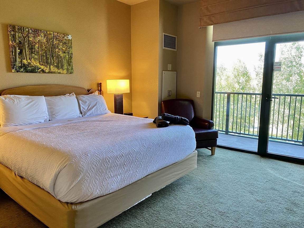 This fourth-floor 1 bedroom, 2 bathroom end unit at the Steamboat Grand offers stunning sunset views of Emerald Mountain and Steamboat Springs. Owners enjoy year-round amenities including an outdoor heated pool, hot tubs, fitness center, sauna, steam room, owner's lounge, private patio, and free parking. The unit also features valet service, ski/boot storage, free shuttle service, and discounts at restaurants and shops. This unique 1/8 share Clydesdale condominium features a king bed bedroom, private bathroom, balcony, and a parlor room with kitchen, dining table, fireplace, and living room area for 4 people and full bathroom. It can be rented in three ways: a one-bedroom condominium sleeping 6 people, a hotel room with a king bed and private balcony, or a parlor room that sleeps 4 people with a kitchen, dining area, living room, and bathroom. More information can be found at steamboatgrand.info.